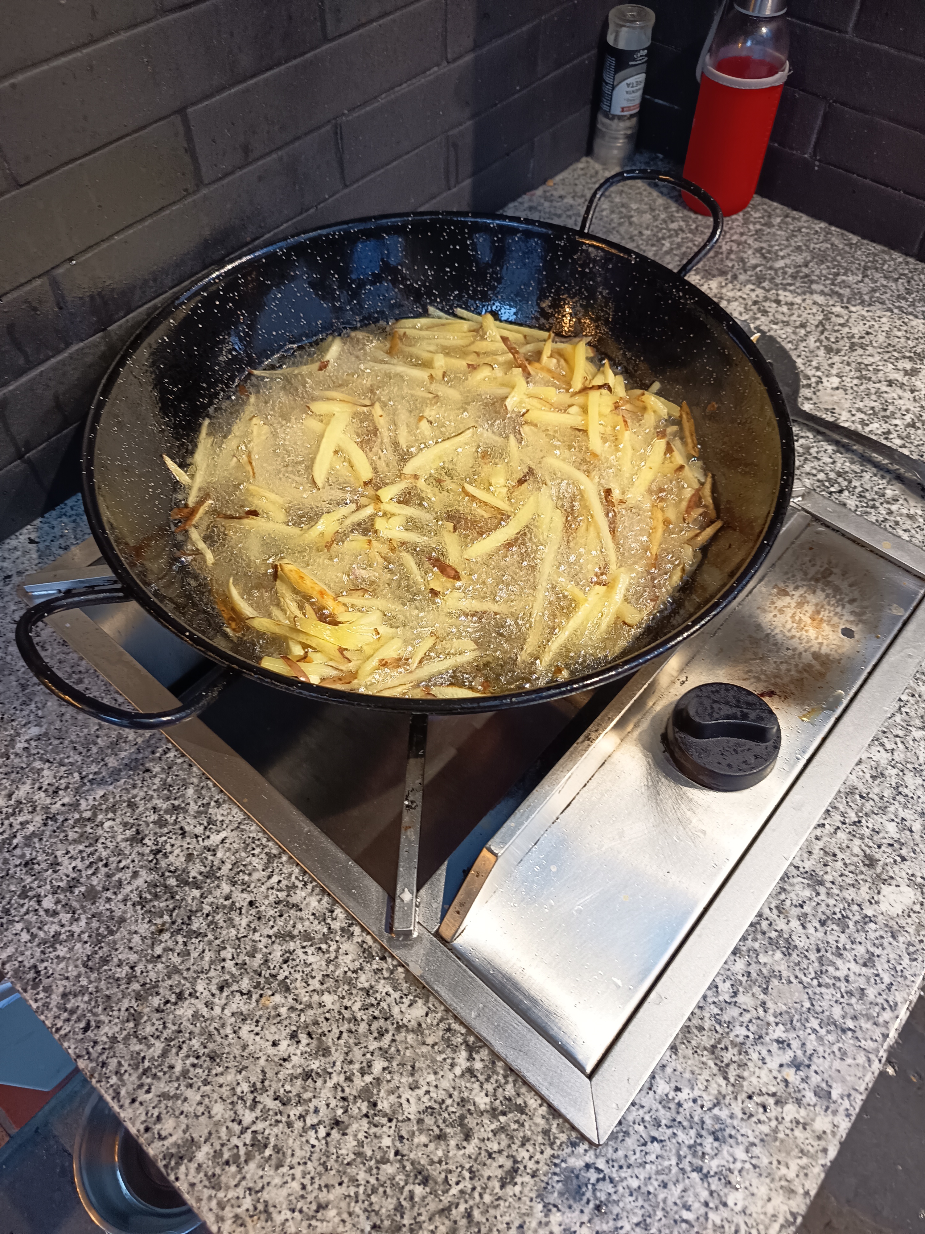 <p style="font-size: 14px; line-height: 1.6; color: #57646f; margin-top: 0.5em; margin-bottom: 0.5em">Vamos descascar as batatas para depois as cortar e podermos fritar, são um acompanhamento fabuloso para esta sanduíche.</p>