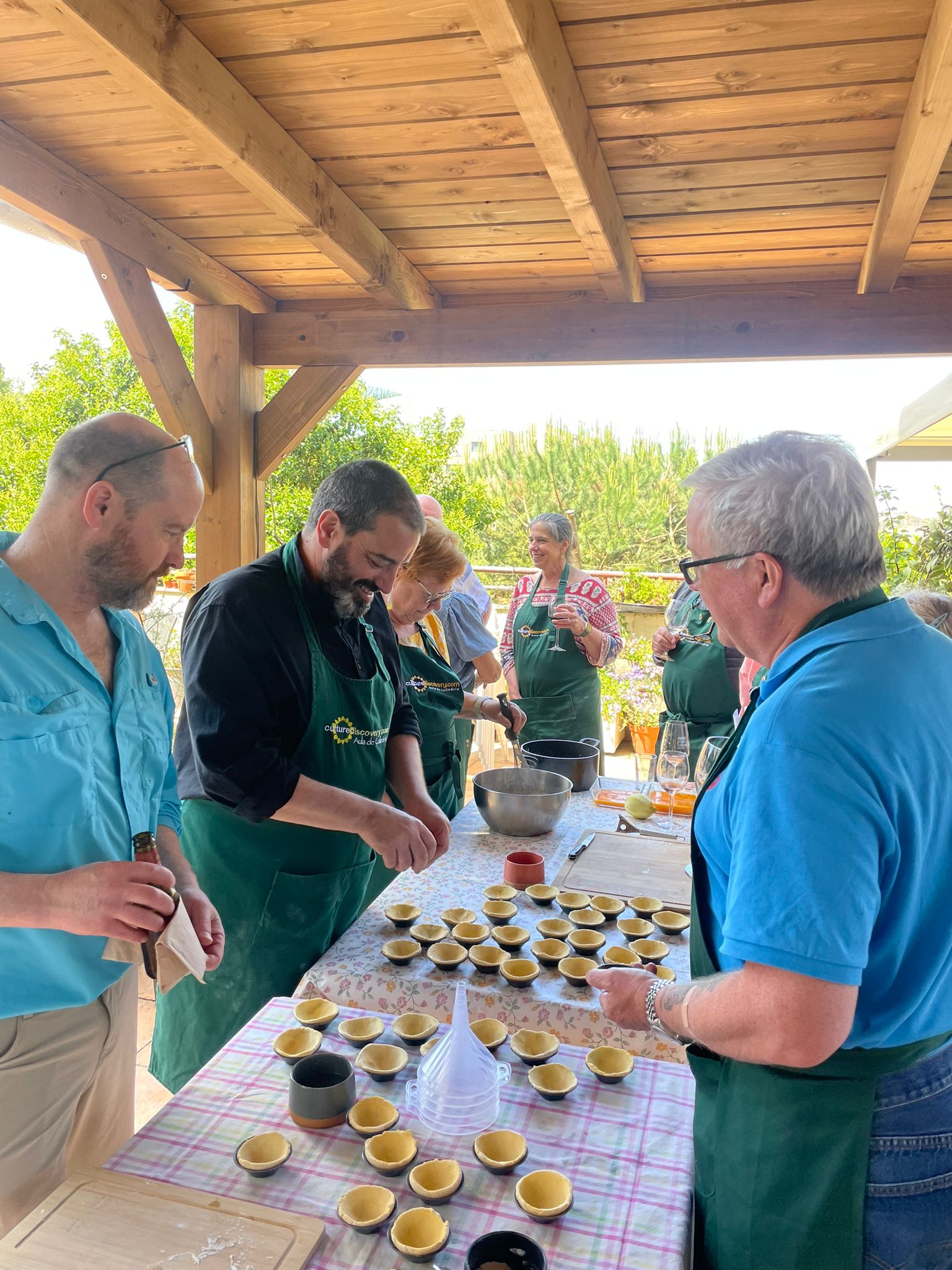 damos inicio onde o convidado é que vai fazer o Pastel de Nata com adição de todos os ingredientes, pesagens, medidas, temperaturas e modos de manuseamento do produto, tudo em perfeita segurança e harmonia no espaço envolvente. Depois de cozidas no forno, vamos fazer uma degustação com uma bebida à sua escolha, um café ou um chá ou Vinho do Porto para maiores de idade.